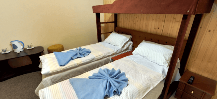 Номери надано в 2-х варіантах: 1) 2 + 1 – в номері двоспальне або два окремі ліжка і додатковий ярус для дитини. 2) 2-х місцевий стандартний номер без додаткового ярусу.